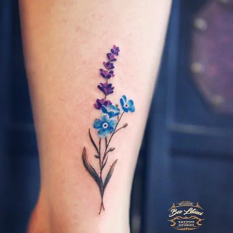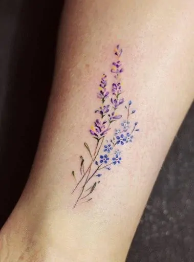 The colors in lavender tattoos change their meaning. Purple means luxury and calmness. Other colors show simplicity and elegance, making the tattoo personal.