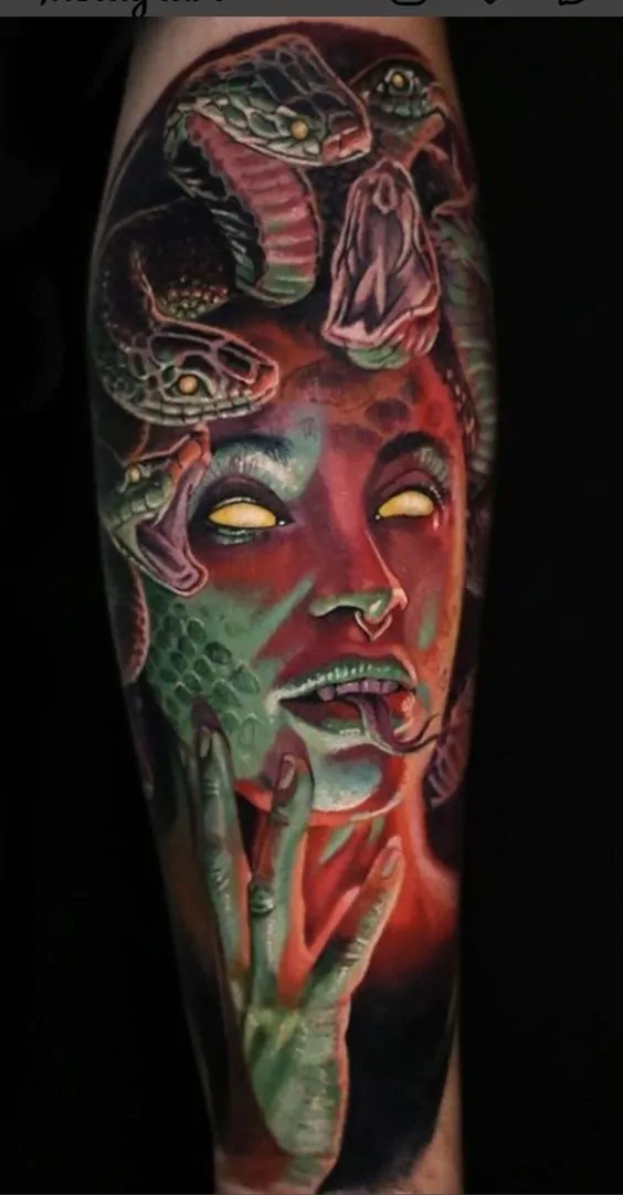Medusa tattoos vary a lot. They can show her as a monster or as beautiful but dangerous with snake hair. Designs can highlight her strength or her role as a protector. They often include many colors and details.