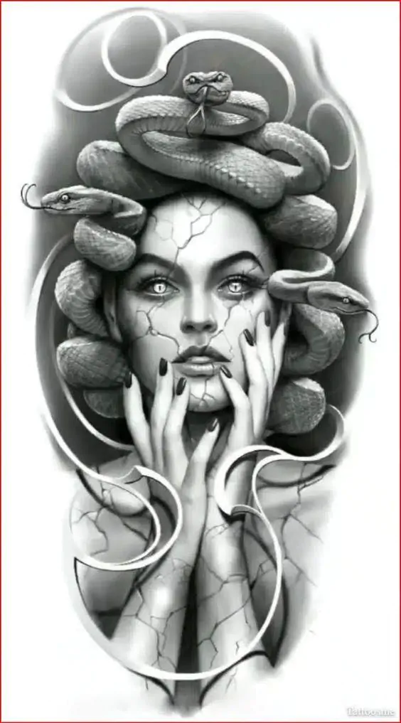 In TV and books, Medusa’s story has a big effect on tattoos. Artists make many styles of Medusa tattoos. They can be detailed or simple, but all show her power.